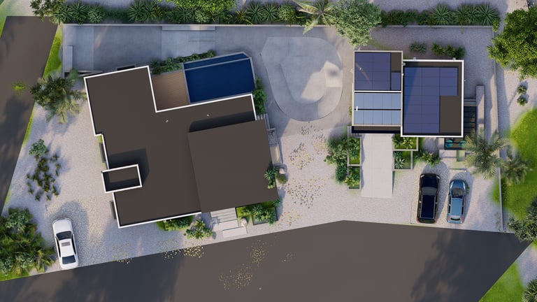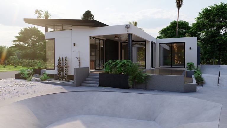 REMODELING OF AN EXISTING BEACH HOUSE PROJECT 3 BEDS/2 BATHS. AND A SKATEBOARD COURT PROPOSAL IN A TWO-BUILDING LOT.
